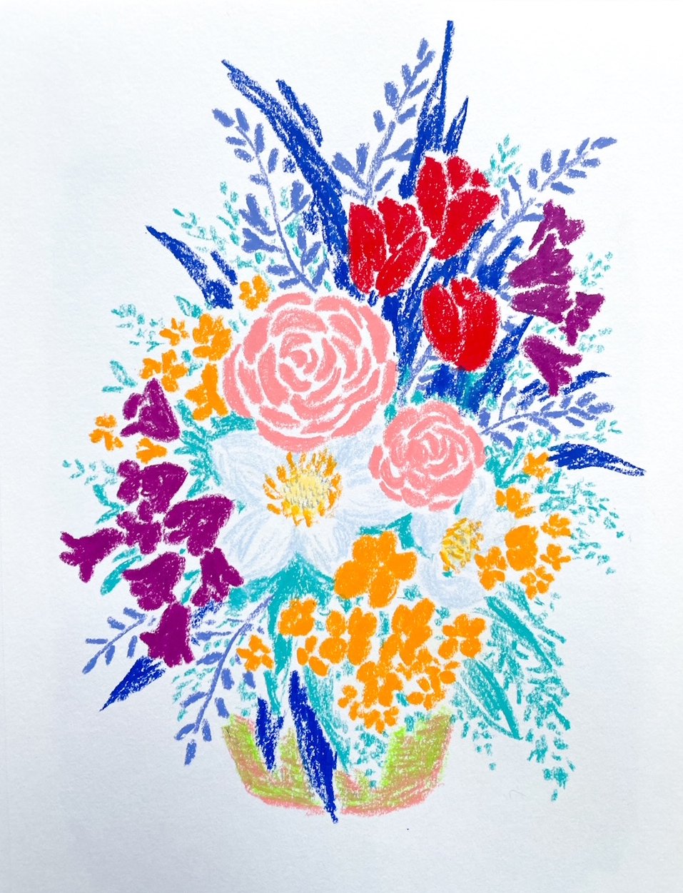 I listened without speaking, splotching paper with colors until they became flowers. B apologized to me for talking so much and being bothersome. Planes make him nervous, and this was his first flight in some years. I told him he was totally fine.